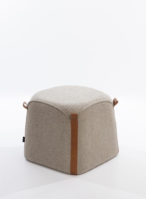 Lüks bouclé kumaşı ve deri kenar detaylarıyla bu puf, her yaşam alanına zarif bir dokunuş katar.